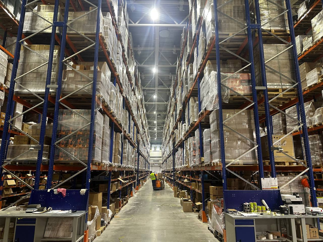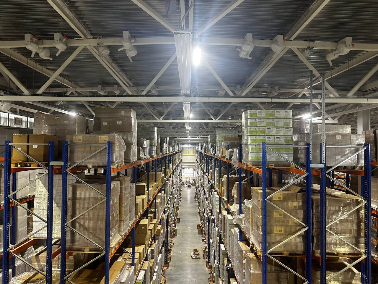 На складе «Русский мастер» мы сделали то, что у многих остаётся на словах: уменьшили количество световых точек в межстелажном пространстве, сократили электромонтаж и расходы на материалы — и при этом добились равномерной освещённости, соответствующей требованиям СНиП и ГОСТ.