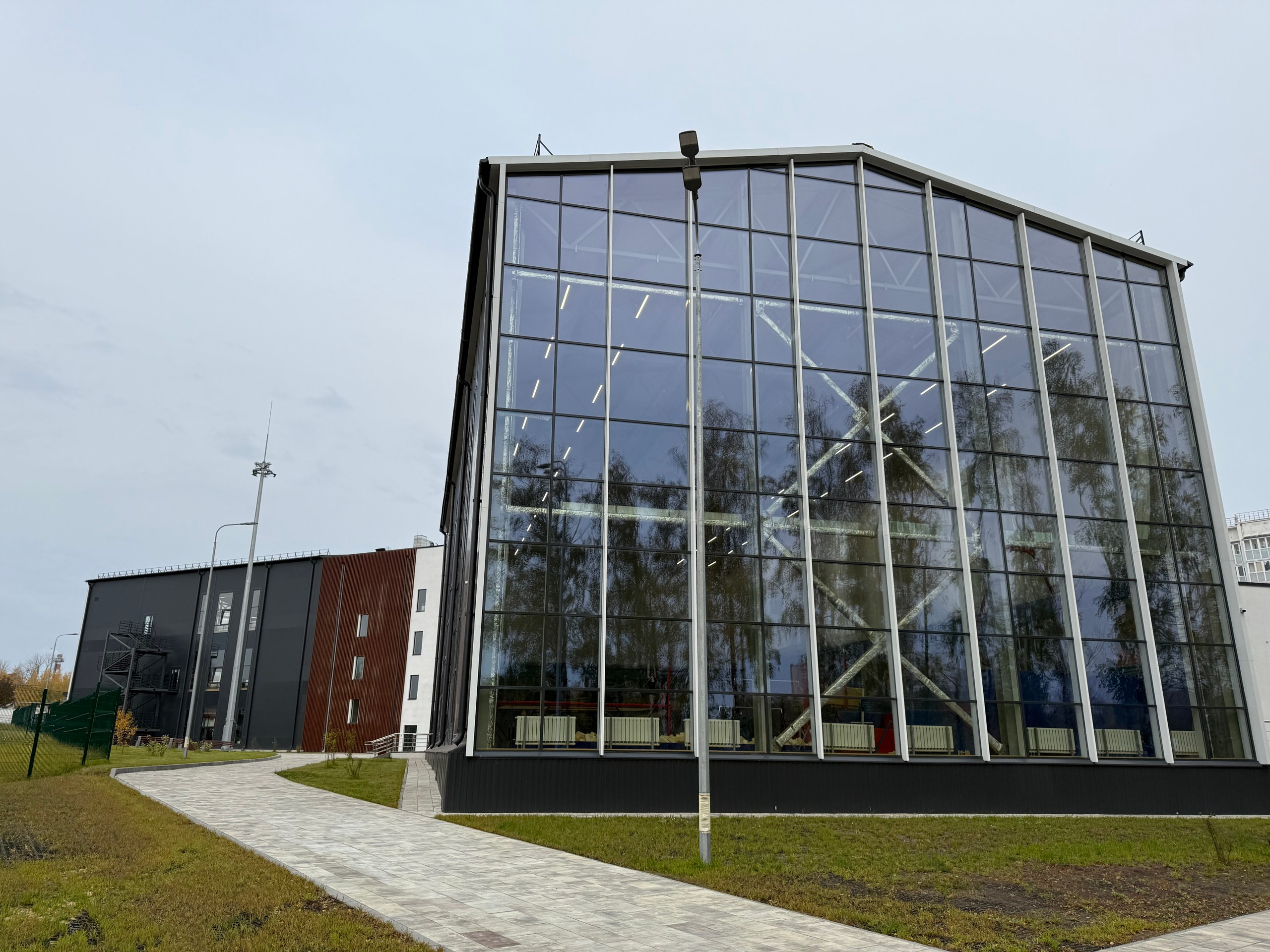 • Внутреннее освещение: игровые залы, трибуны, тренажёрные и вспомогательные помещения — равномерная и комфортная рабочая освещённость, контроль бликов (низкий UGR), адаптация под соревнования и тренировки.