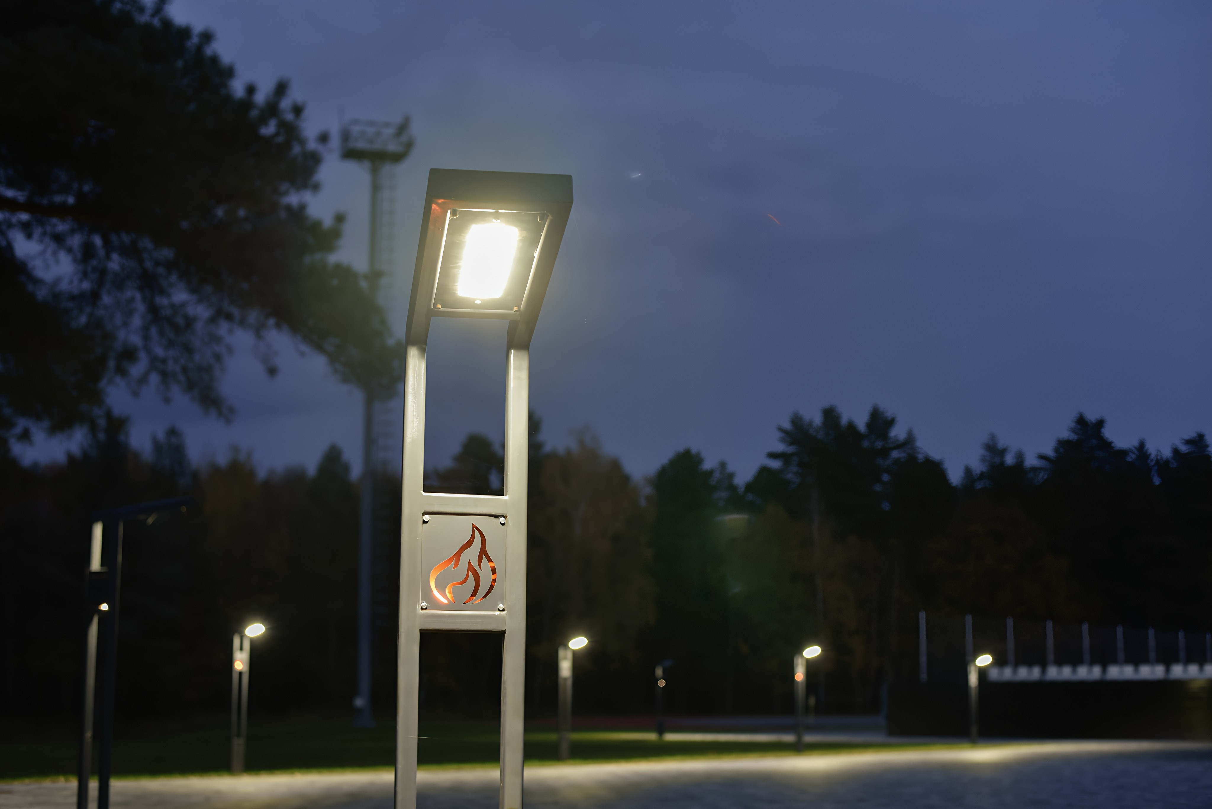 Подсвеченный логотип — не только визуальный маркер. Это элемент идентичности, который делает пространство узнаваемым и безопасным в тёмное время суток. Наши опоры создают равномерную, не ослепляющую среду освещения, где комфортно и детям, и взрослым, где можно заниматься спортом, гулять и отдыхать.