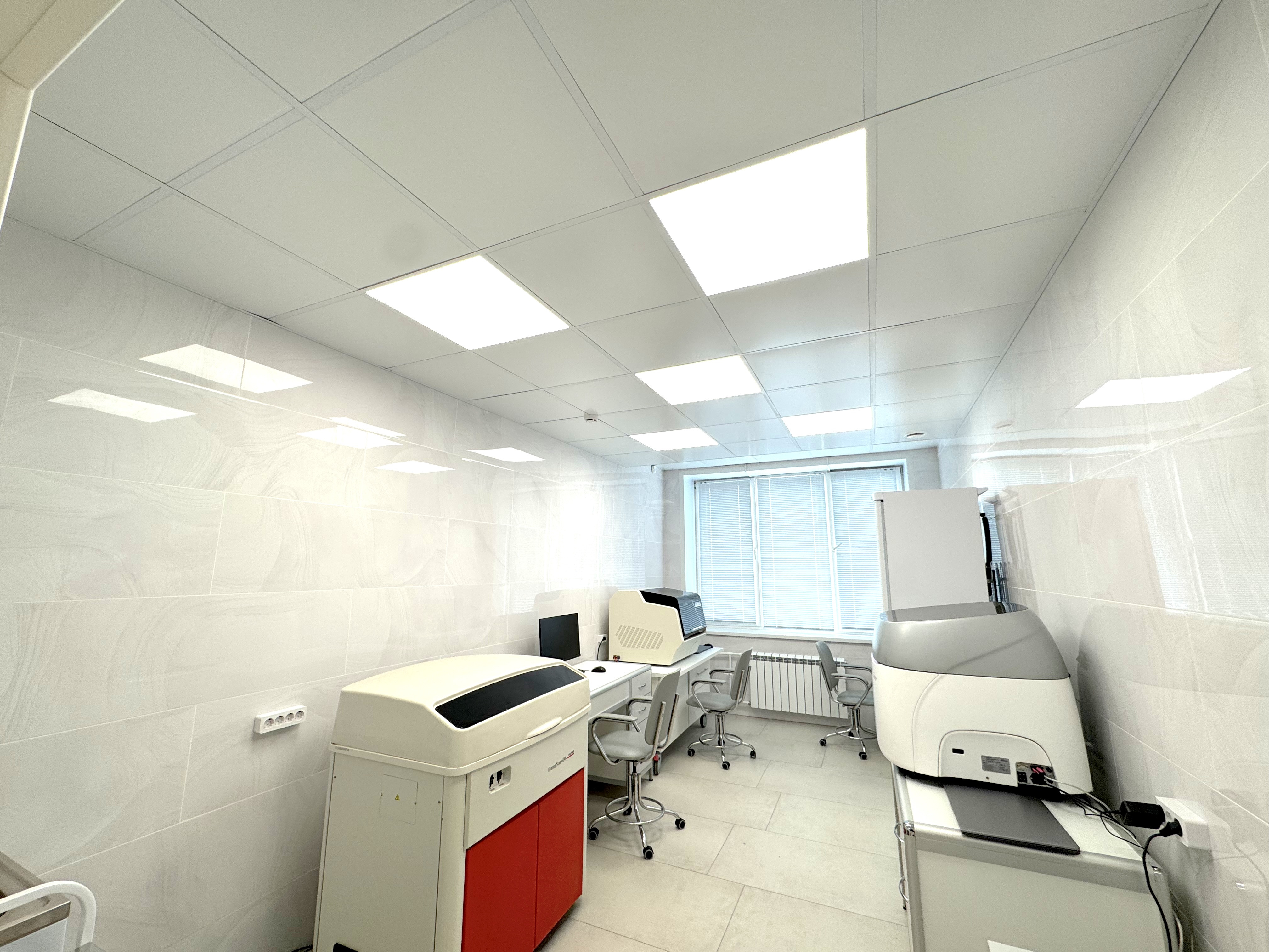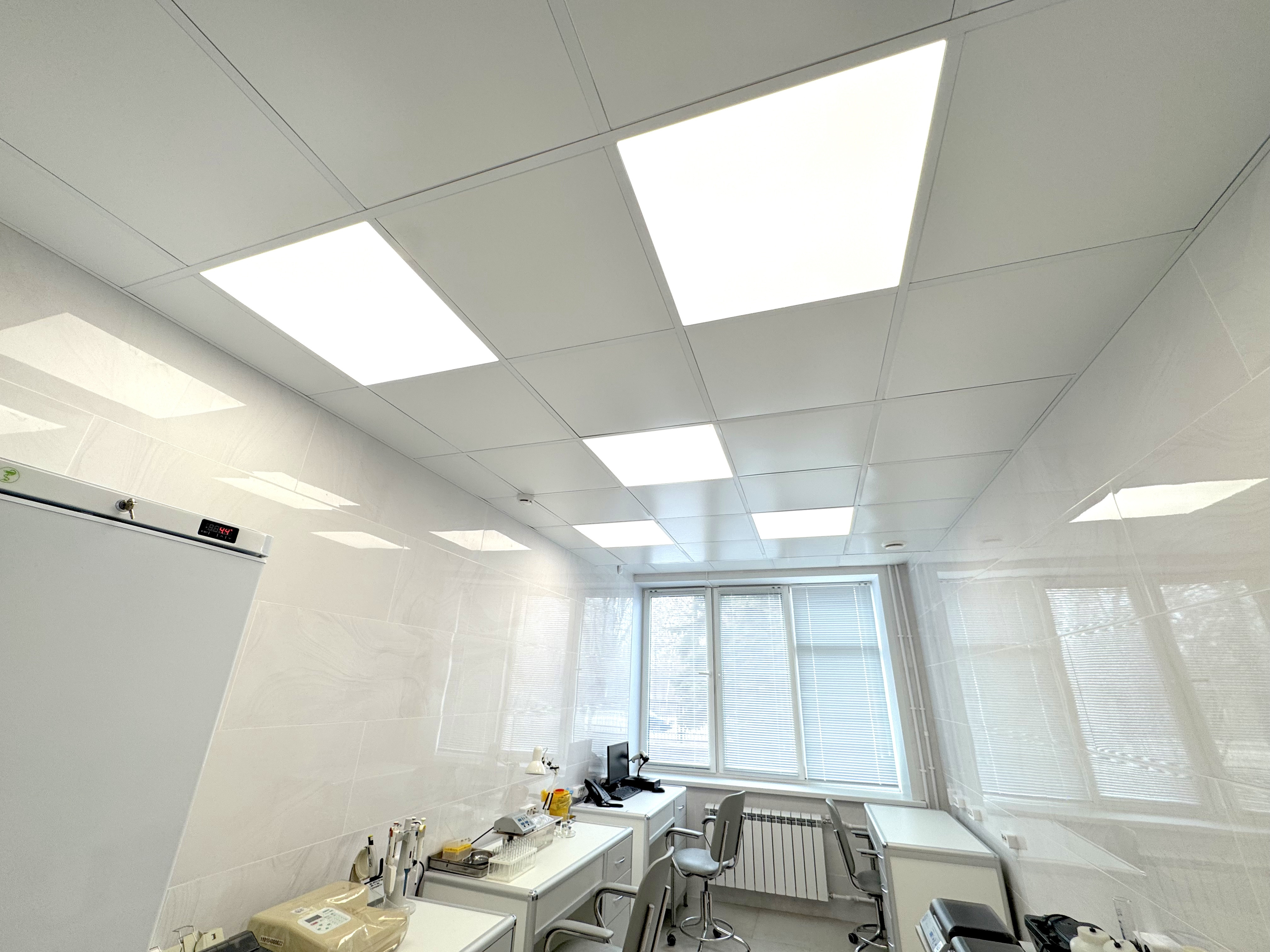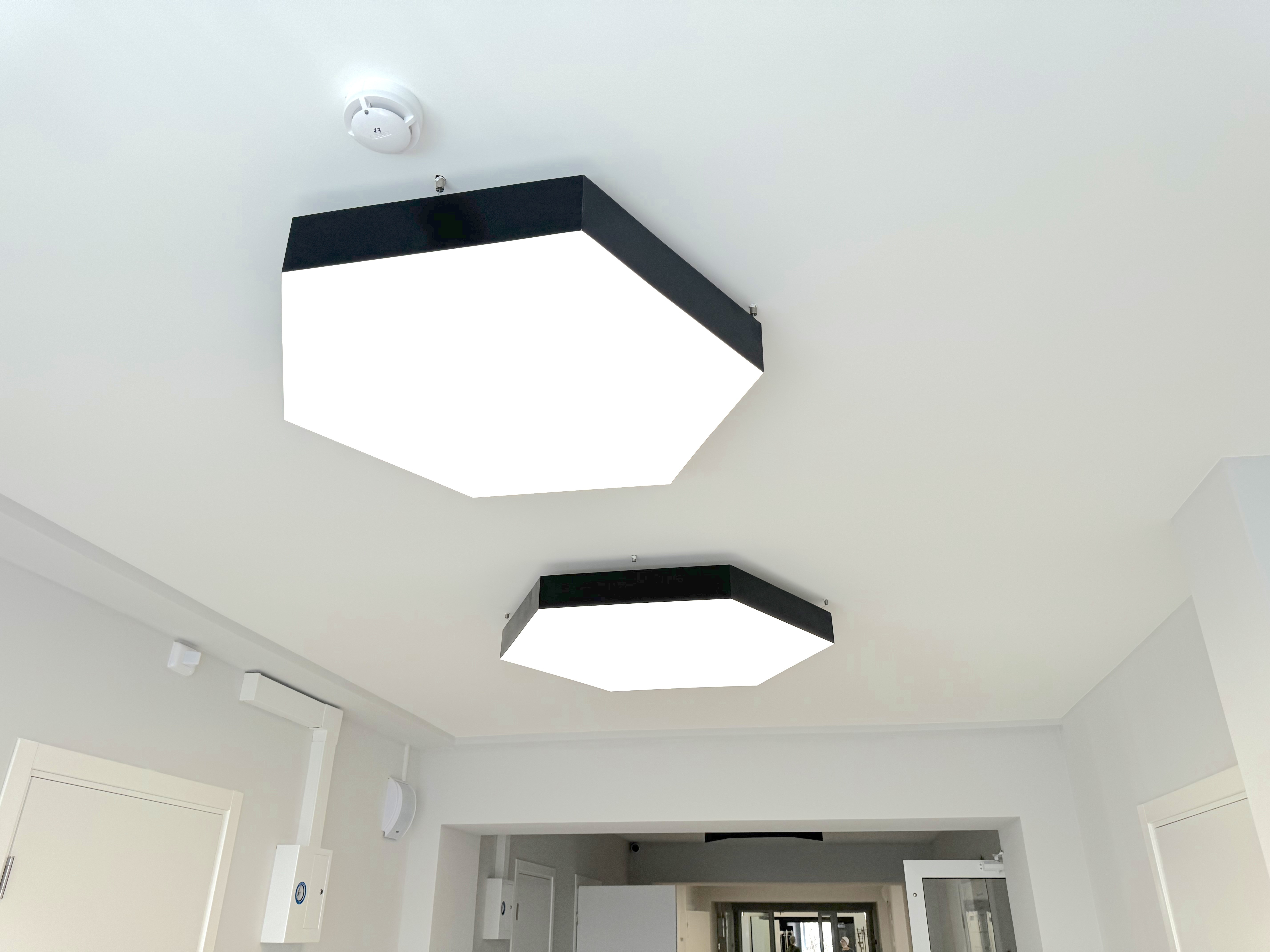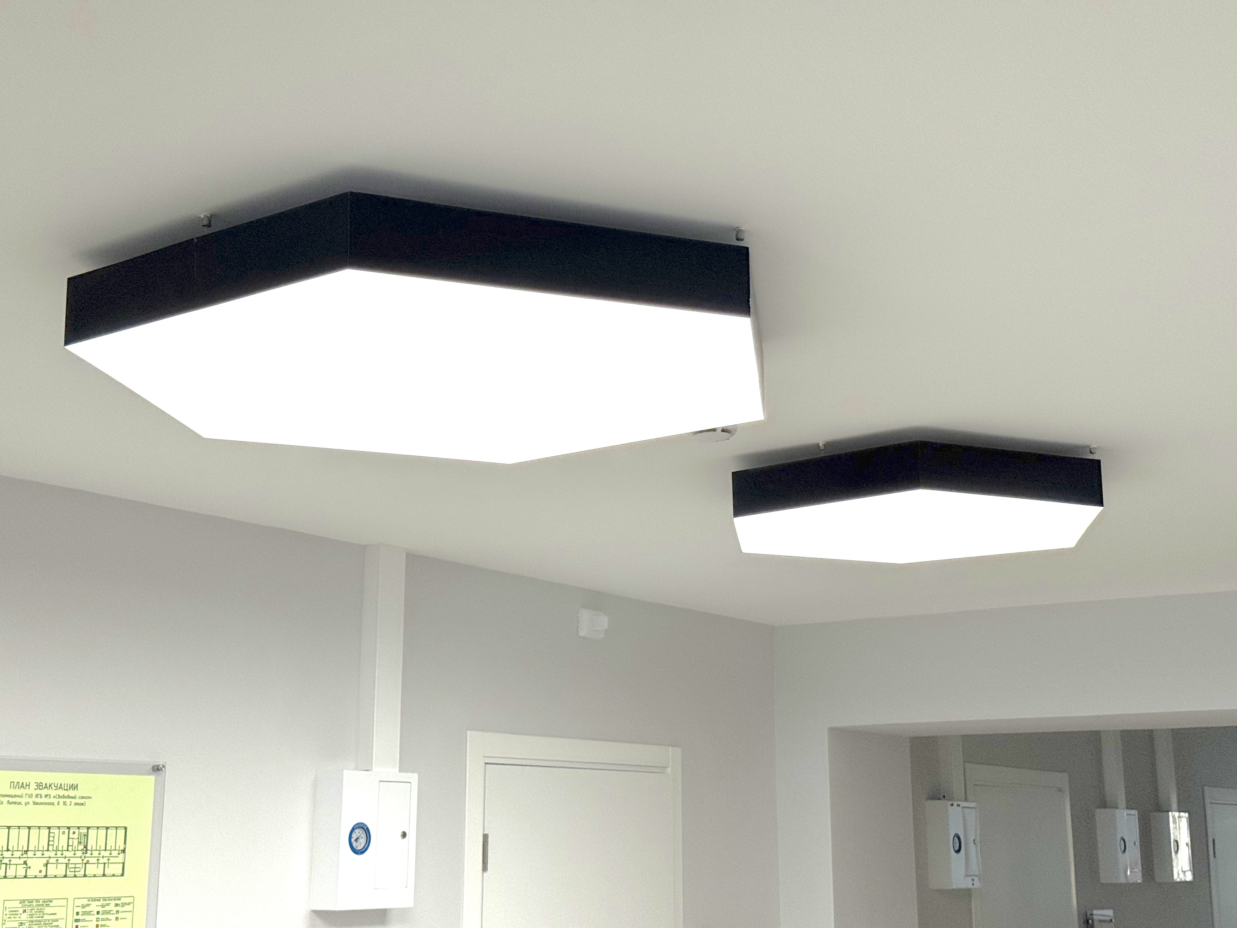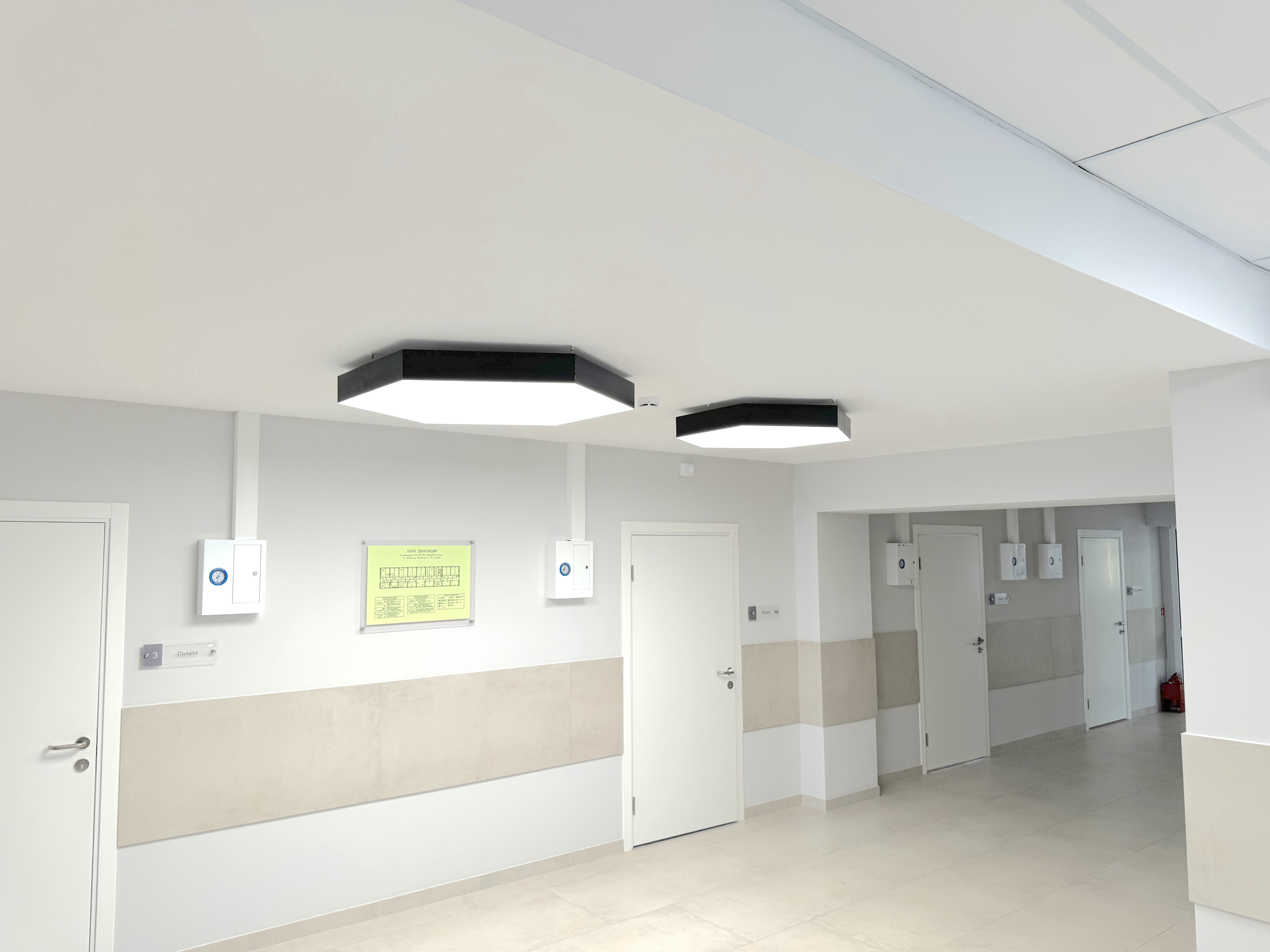 Особенность проекта — сочетание функциональности и эстетики. Помимо стандартных медицинских решений, были реализованы дизайнерские светильники, полностью соответствующие требованиям к медицинскому освещению.