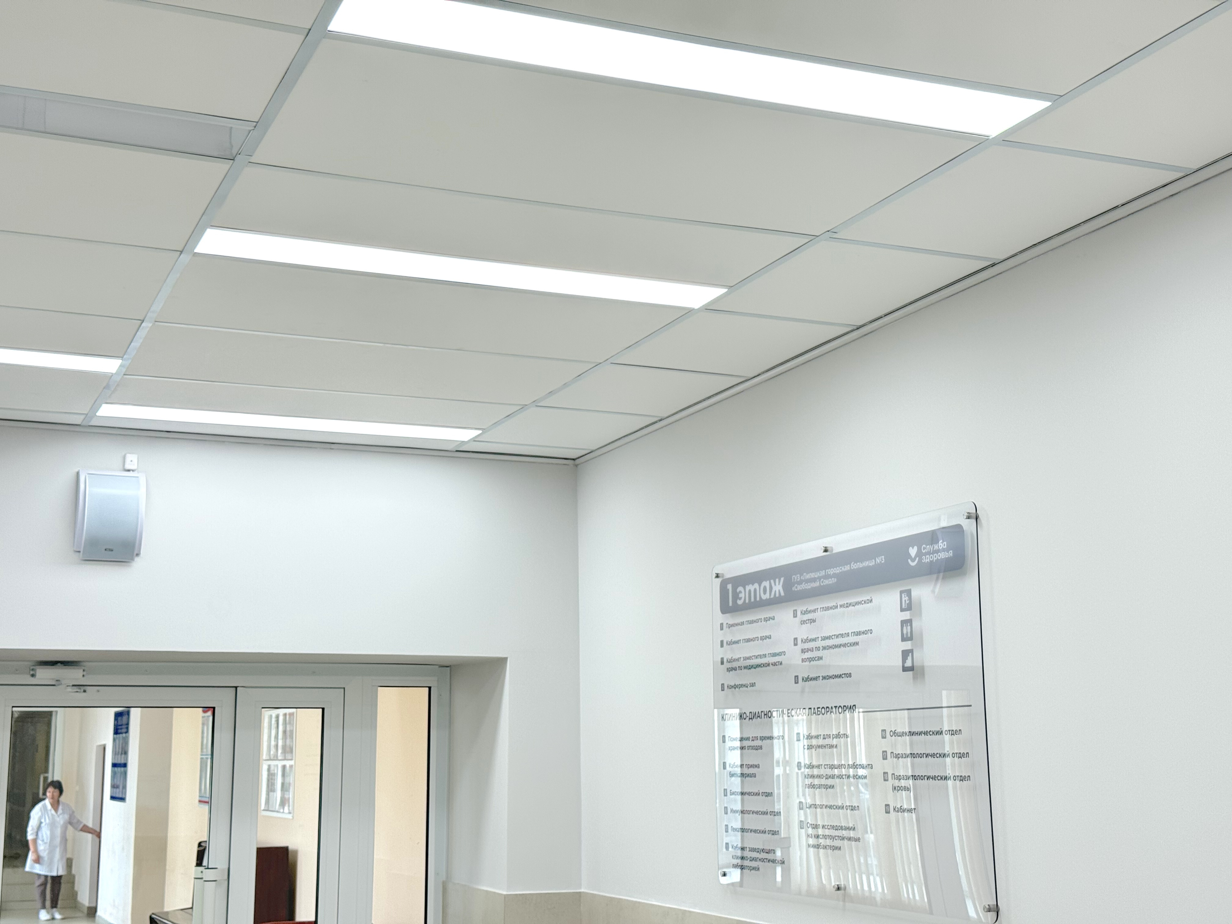 В проекте ГУЗ Липецкая городская больница №3 «Свободный сокол» компанией IETC реализовано полное освещение объекта под ключ — от палат до всех этажей и общественных зон.